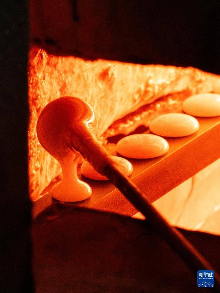 r走进位于保山市隆阳区金鸡乡的永子文化园,上千度的窑炉昼夜不息。永子第十二代传人、国家级非遗传承人李国伟坐于炉前,目光如炬。他右手持特制滴棒,从容蘸裹熔化的玉料,将其轻巧滴沥在左手所持的厚铁板上。在一点一收间,一枚枚莹润细腻的永子从火红的液态逐渐凝固成扁圆的固态,在铁板上整齐排列。“这看似机械、快速的动作,至少需要六七年的苦练才能达到心手合一,”李国伟说,“因为滴制永子没有模具,大小薄厚全凭经验和手感。”40多度的室温环境下,火光照映在李国伟脸上,汗水浸湿衣衫,他却气定神闲,一气呵成,几分钟就滴制出一盘大小、薄厚统一的棋子。