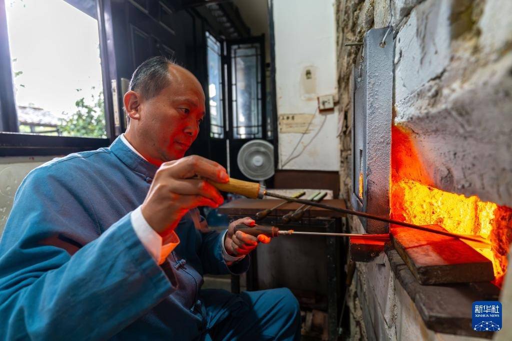 11月19日,匠人在保山市永子文化园滴制永子。新华社记者 高咏薇 摄